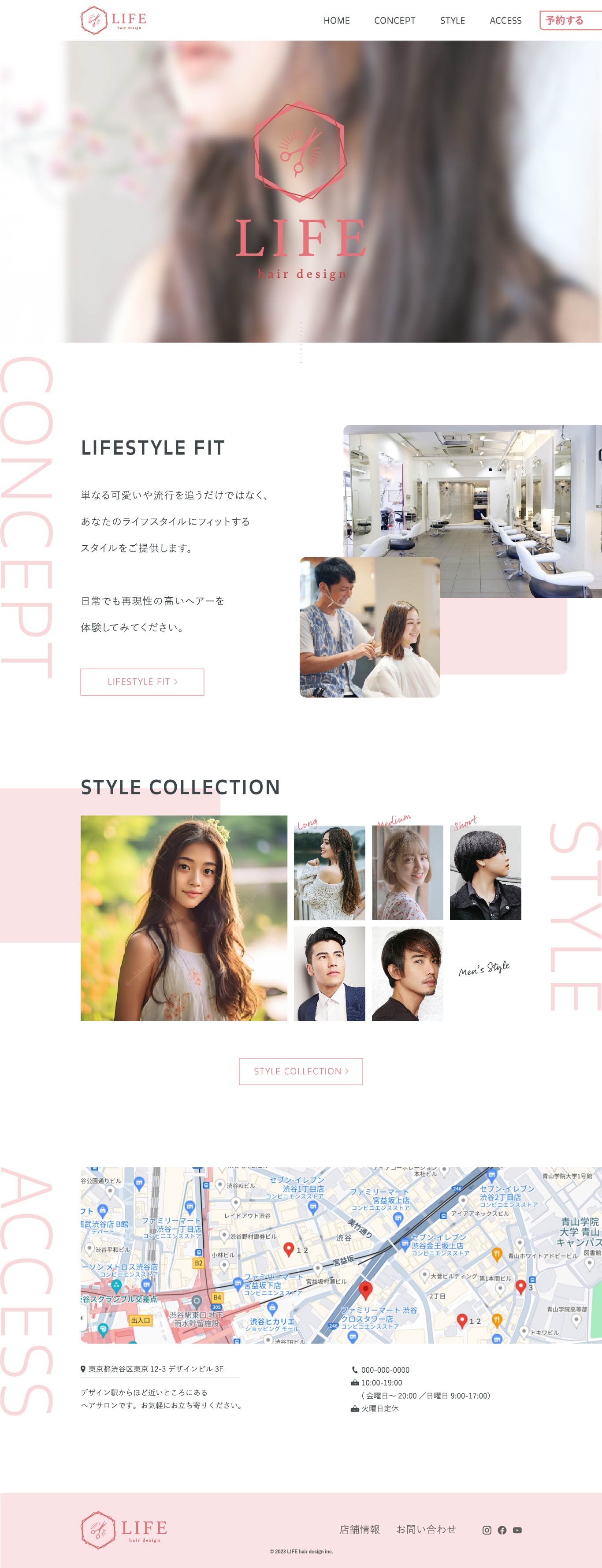 - 柔らかで温かみのあるピンクをメインカラーに、美容室の女性らしさとリラックスした雰囲気を演出