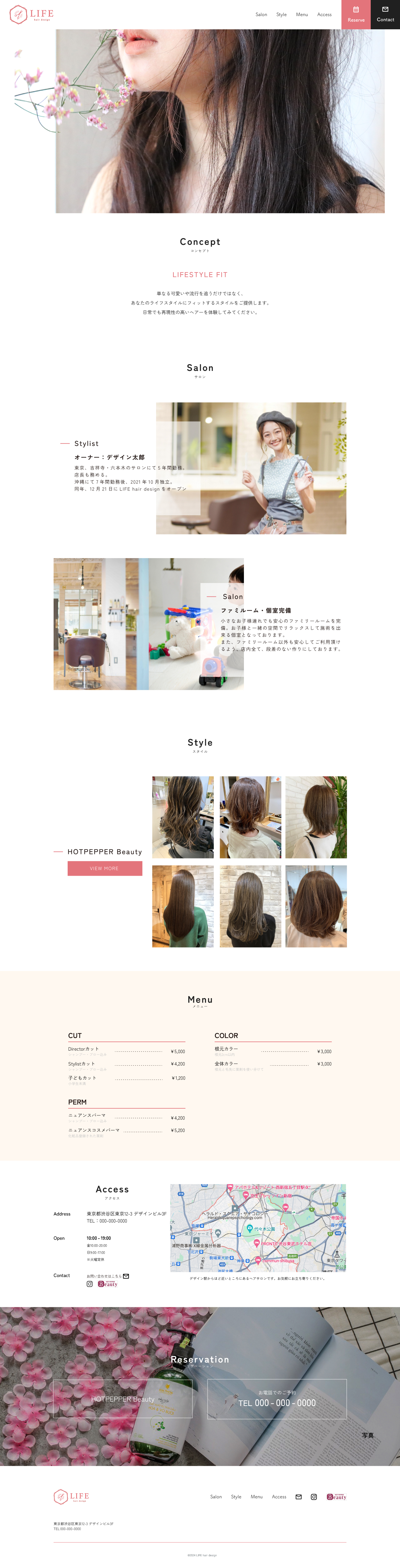 ターゲットは20~50代女性です。コーポレートカラーのピンクと白を基調に全年齢に対応できるようなシンプル系・キレイ系でまとめました。