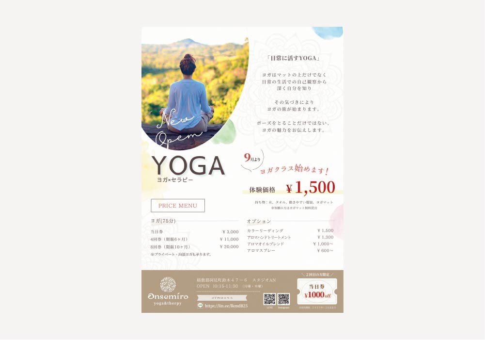 「Onsemiro 様」ヨガ教室の体験募集チラシ